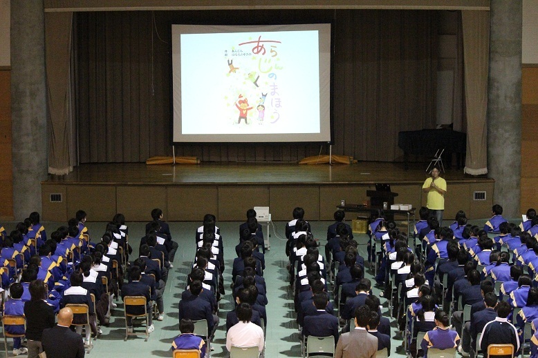 ・ 今日アラジンさんの話をきいて、「人を笑顔にさせる人だな」と思いました。最初から最後までみんなを楽しませていたことが本当に心に残りました。また「今を全力で楽しもう」という前向きな気持ちになることもできました。「自分は過去に〜があったから今はだめなんだ」と過去を理由にするのではなく、逆に「過去に〜があったから今はこんなに楽しんだ」と思えるようになりたいと感じました。たくさんの良い話が聞けて本当によかったです。